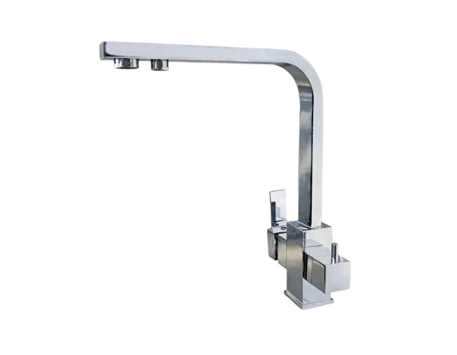 Üç yollu su arıtma bataryası. Kullanım suyu soğuk sıcak ve arıtma suyu için üçü bir arada kullanım için tasarlanmıştır. Tezgahta ikinci bir musluk yeri açmadan mevcut bataryanızın yerine takılmakdadır.
